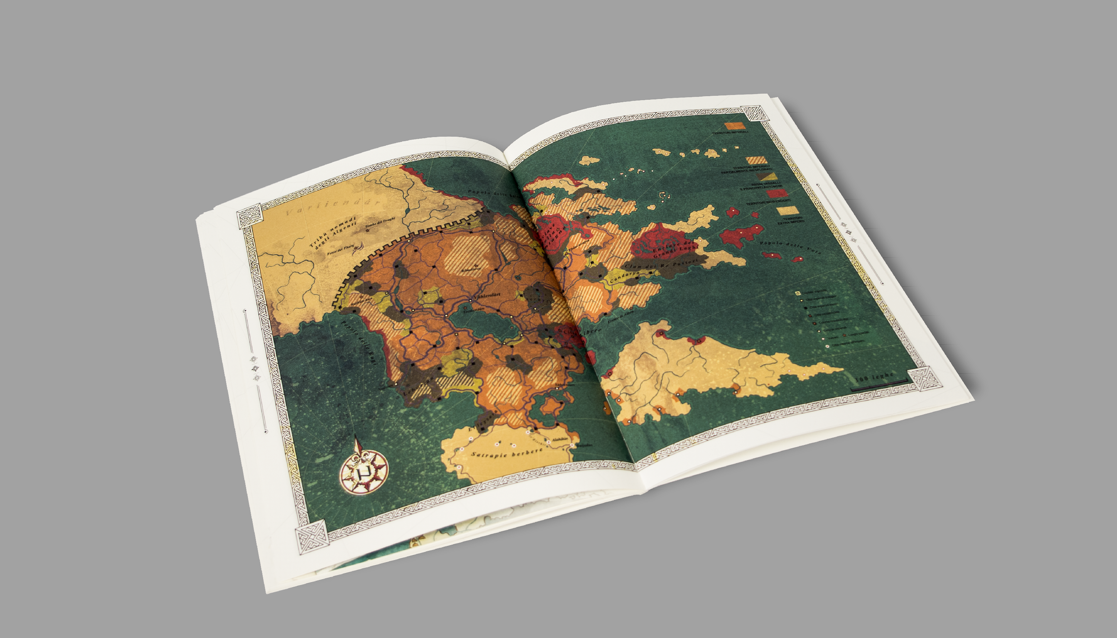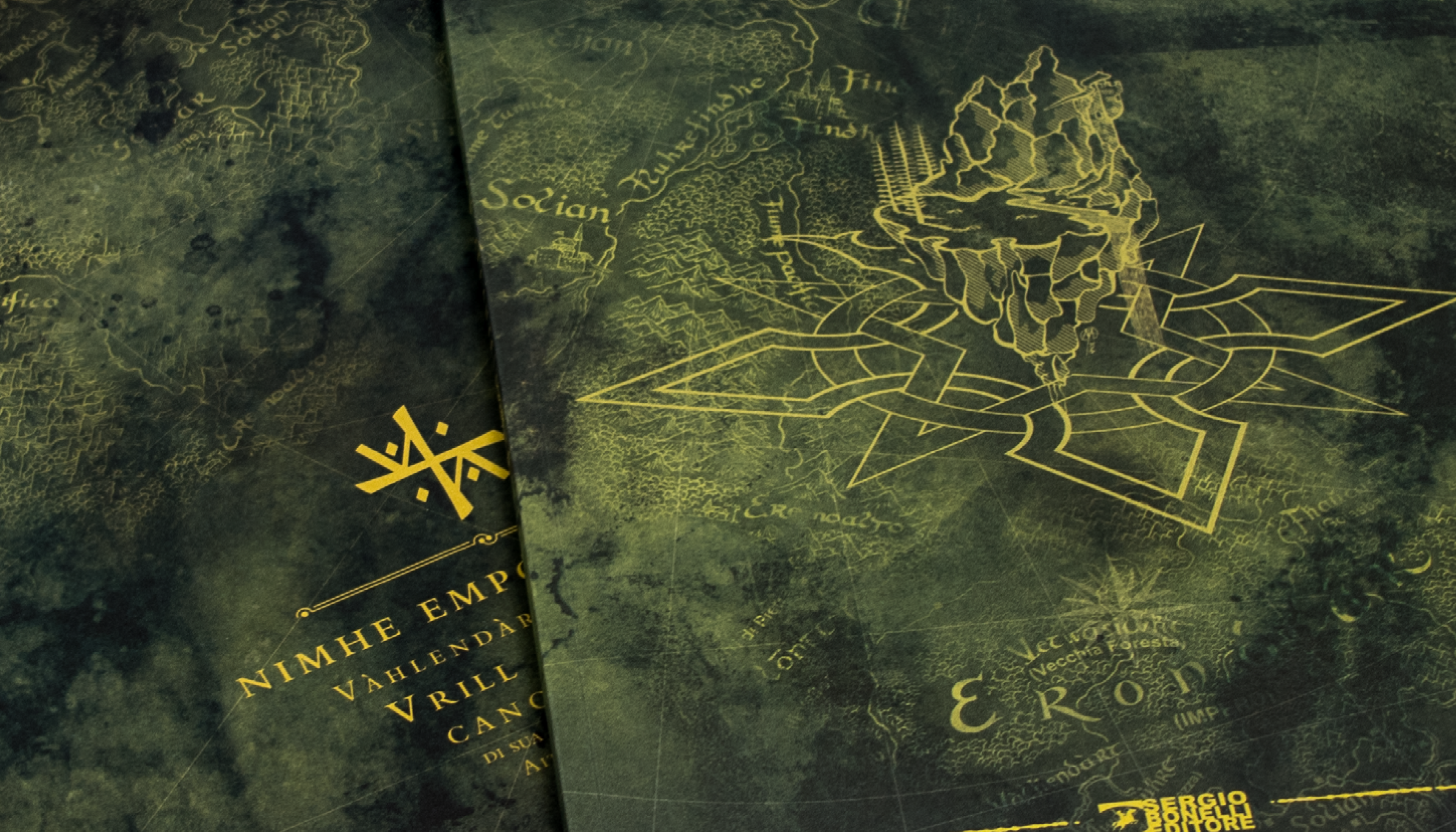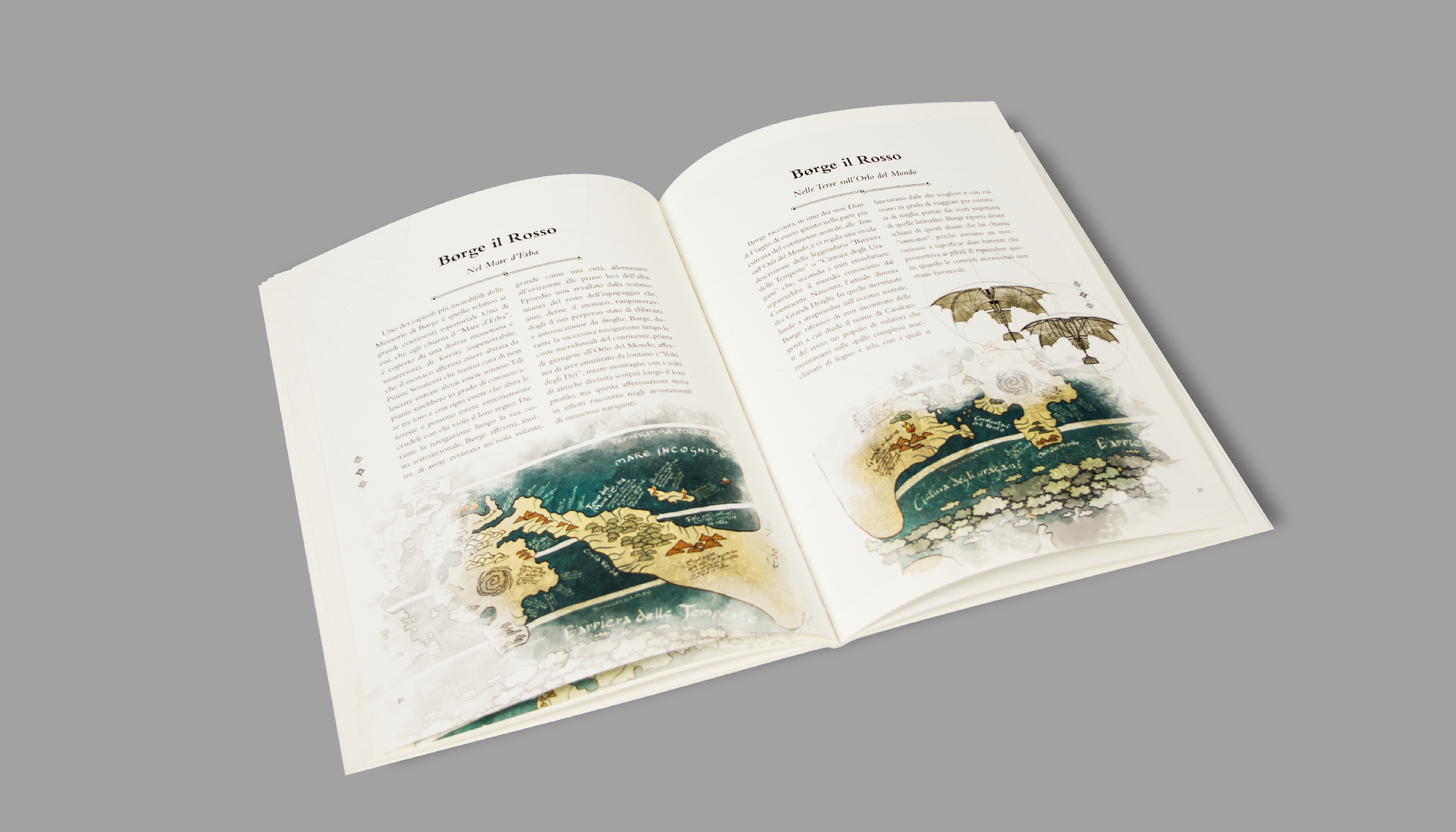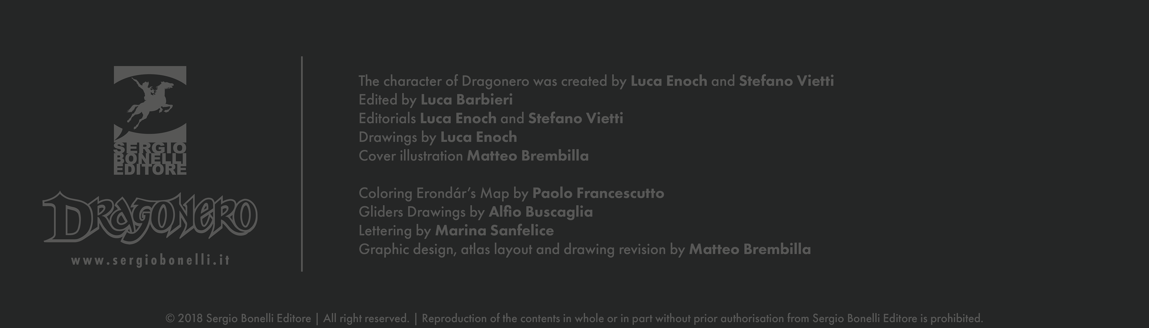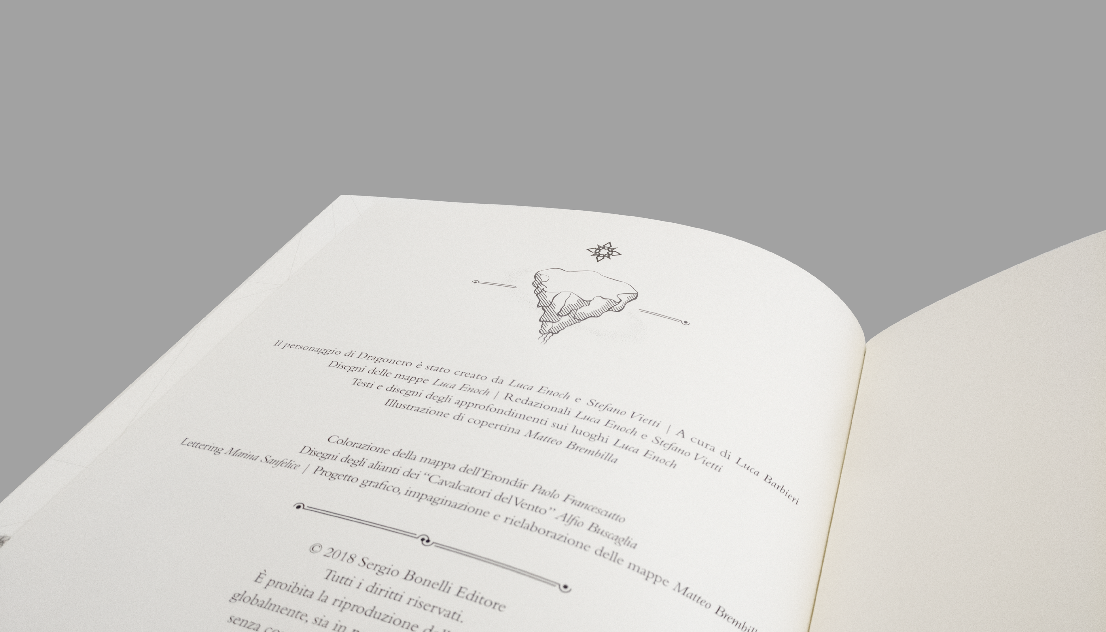 The Dragonero’s Atlas is a bookstore volume produced by Sergio Bonelli Editore. It is composed by 48 colored pages containing Dragonero World’s maps, drawings and editorials. Cover illustration is a graphic representation of a floating island on the green parchment texture. With collaboration of Luca Enoch, Stefano Vietti, Luca Barbieri, Marina Sanfelice, Alfio Buscaglia, Paolo Franscescutto.