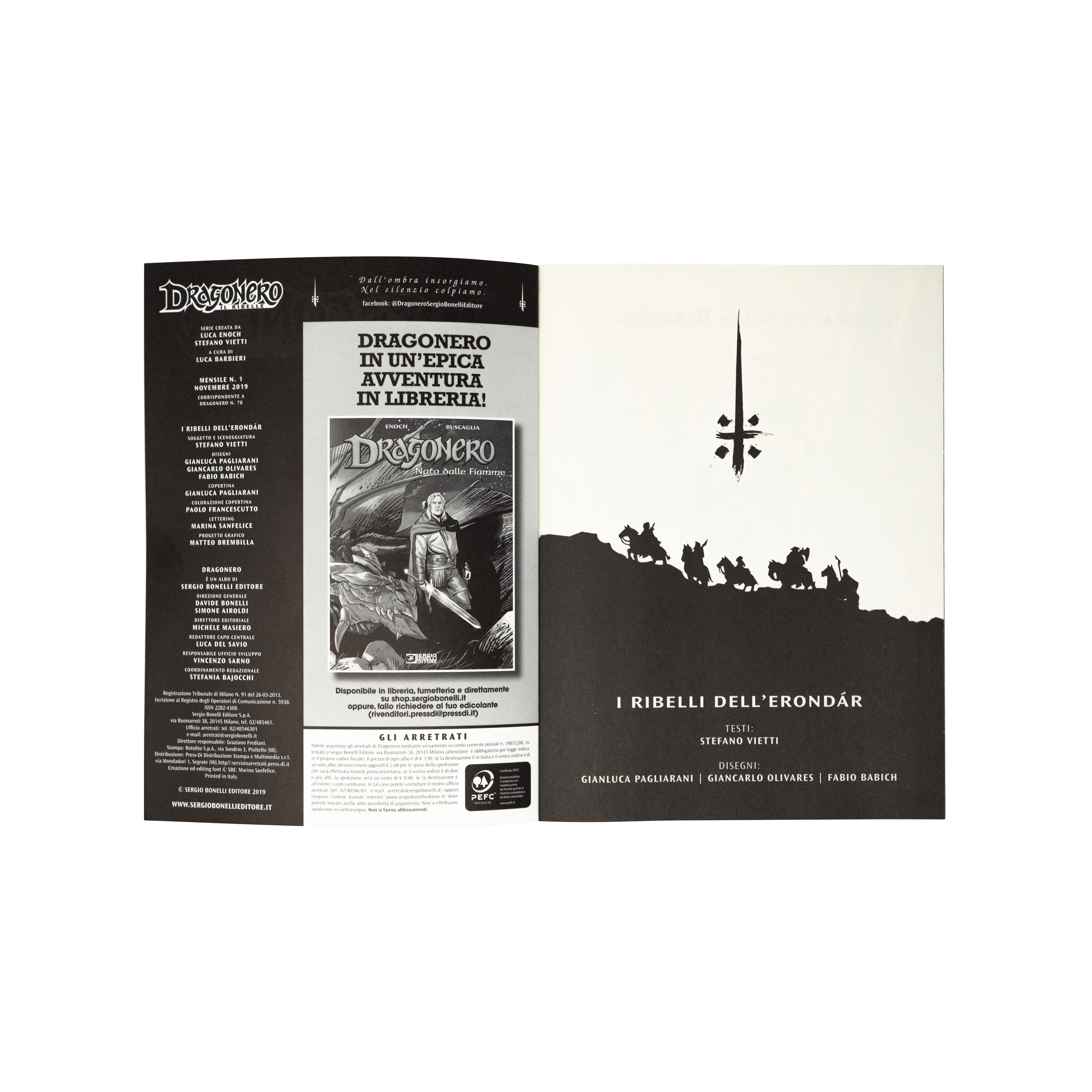 Dragonero is comics book property of Sergio Bonelli Editore. Directorate General Davide Bonelli and Simone Airoldi, editorial director Michele Masiero, editor in chief Luca Del Savio, head of the systems development department Vincenzo Sarno, editorial co-ordination Stefania Bajocchi.