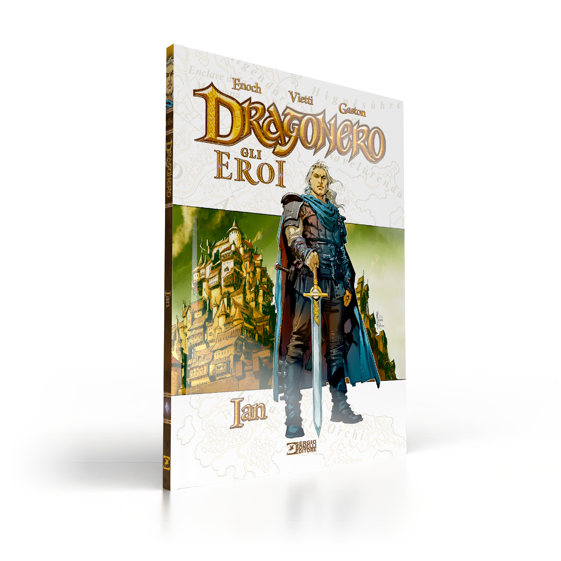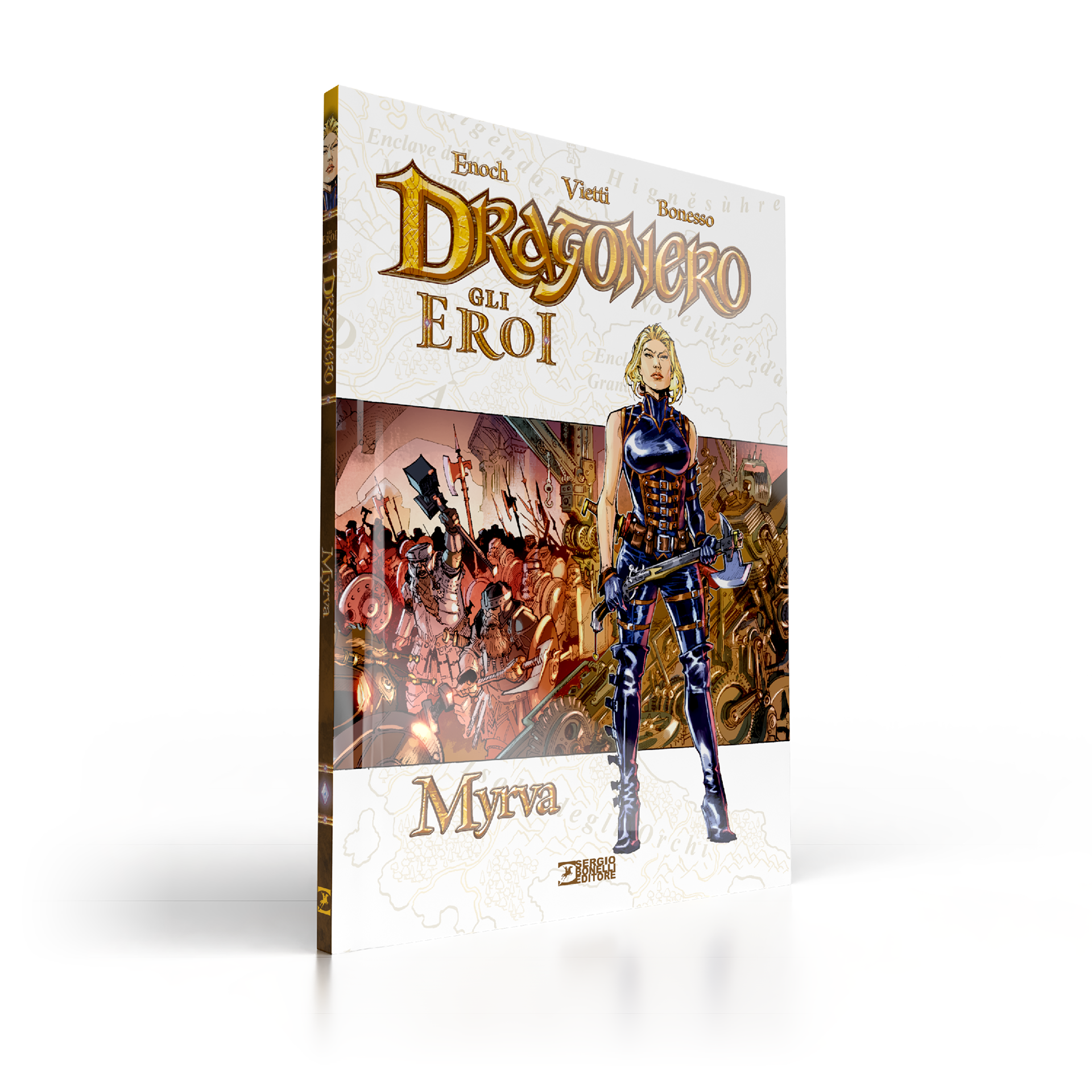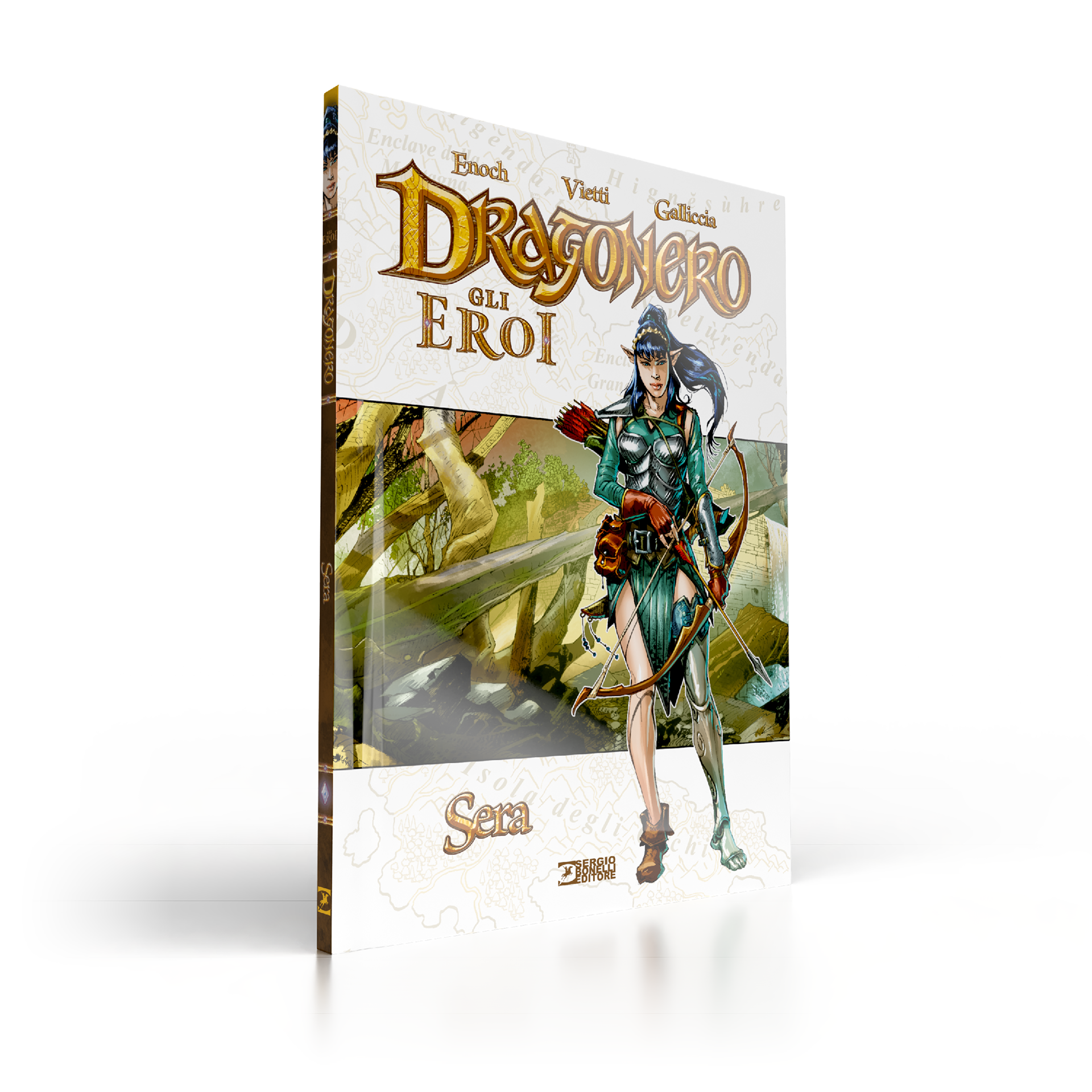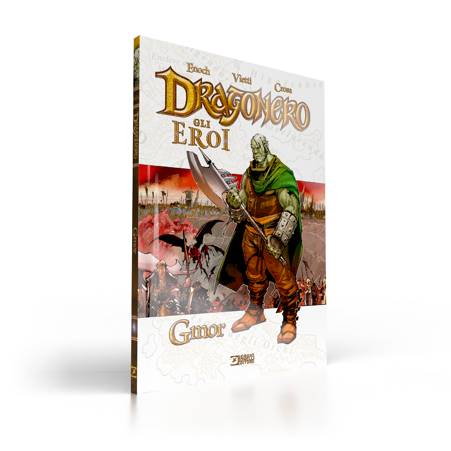 Dragonero is comics book property of Sergio Bonelli Editore. Directorate General Davide Bonelli and Simone Airoldi, editorial director Michele Masiero, editor in chief Luca Del Savio, head of the systems development department Vincenzo Sarno, editorial co-ordination Stefania Bajocchi. Bookstore Manager: Giovanni Mattioli.