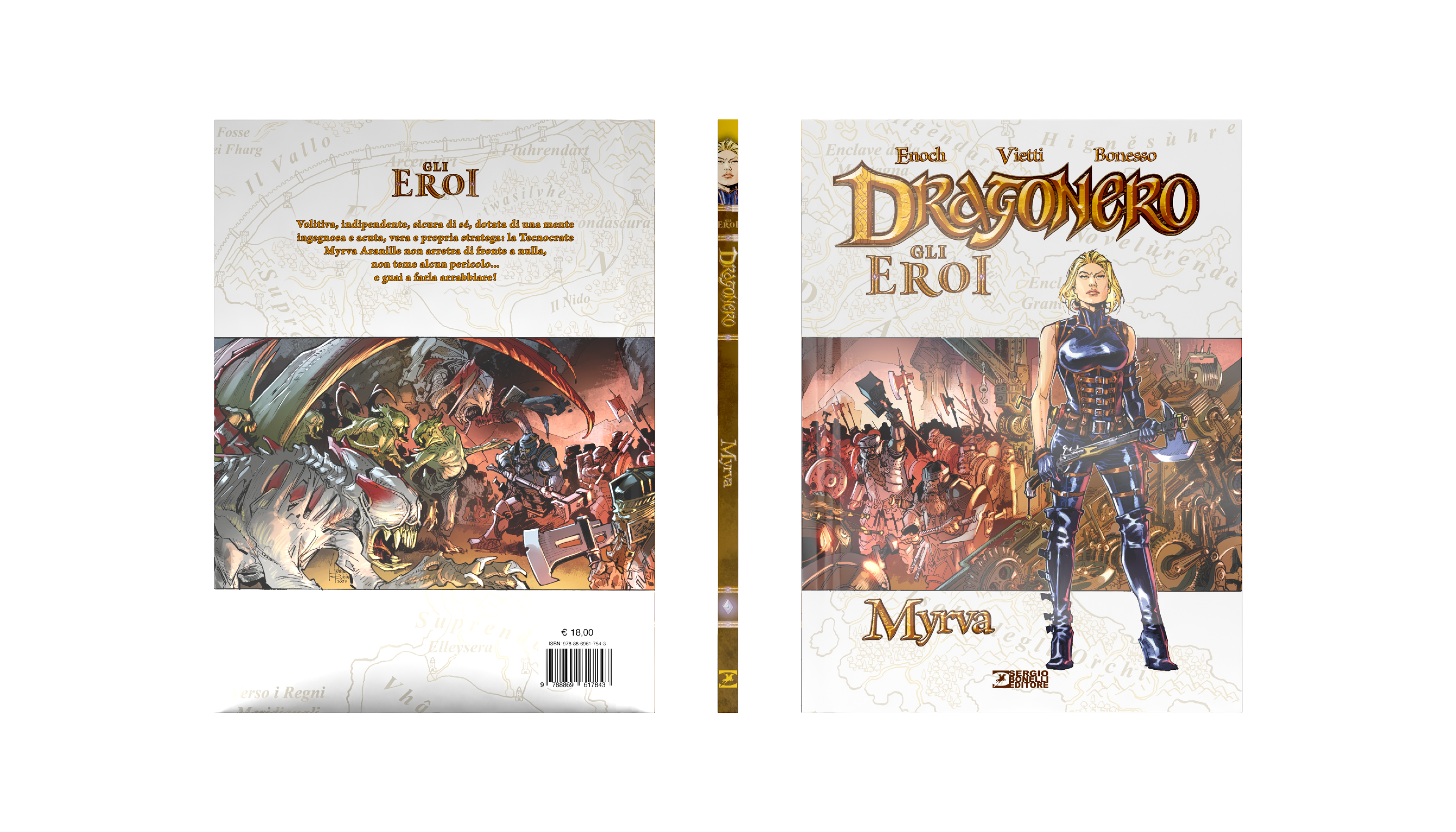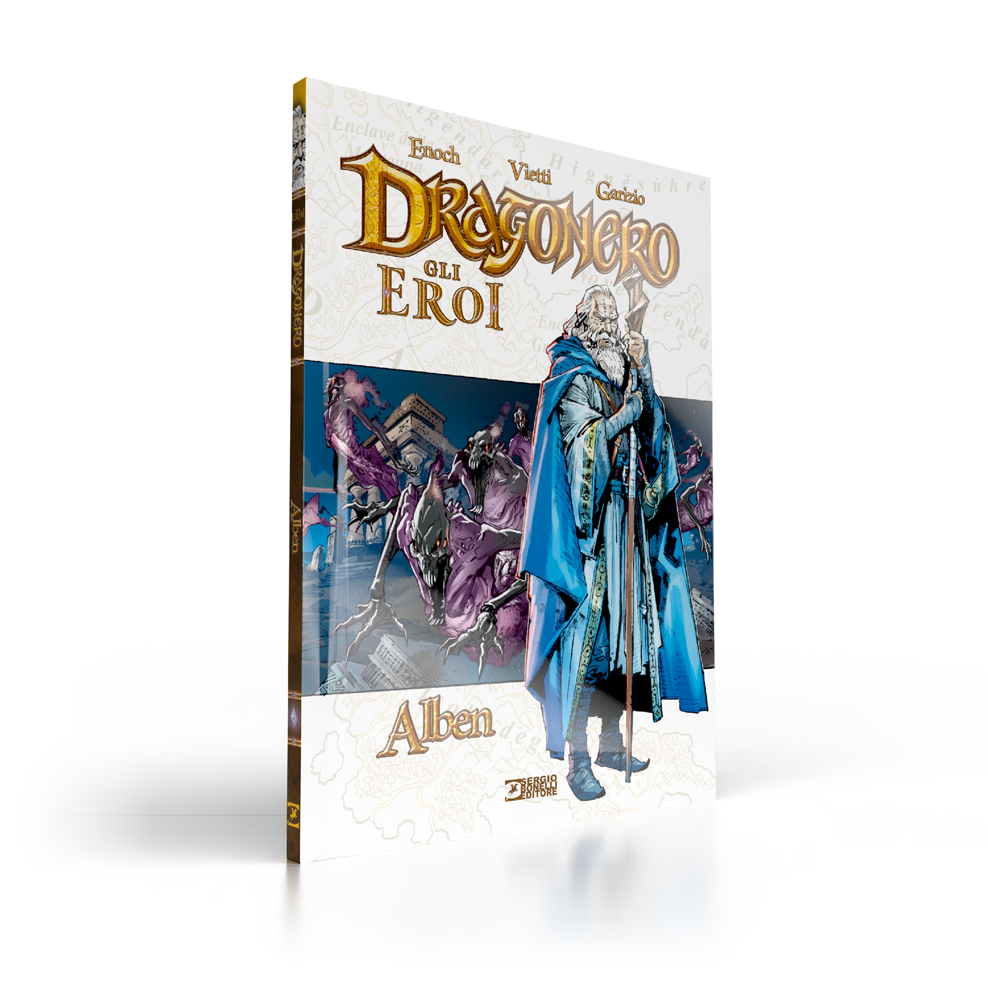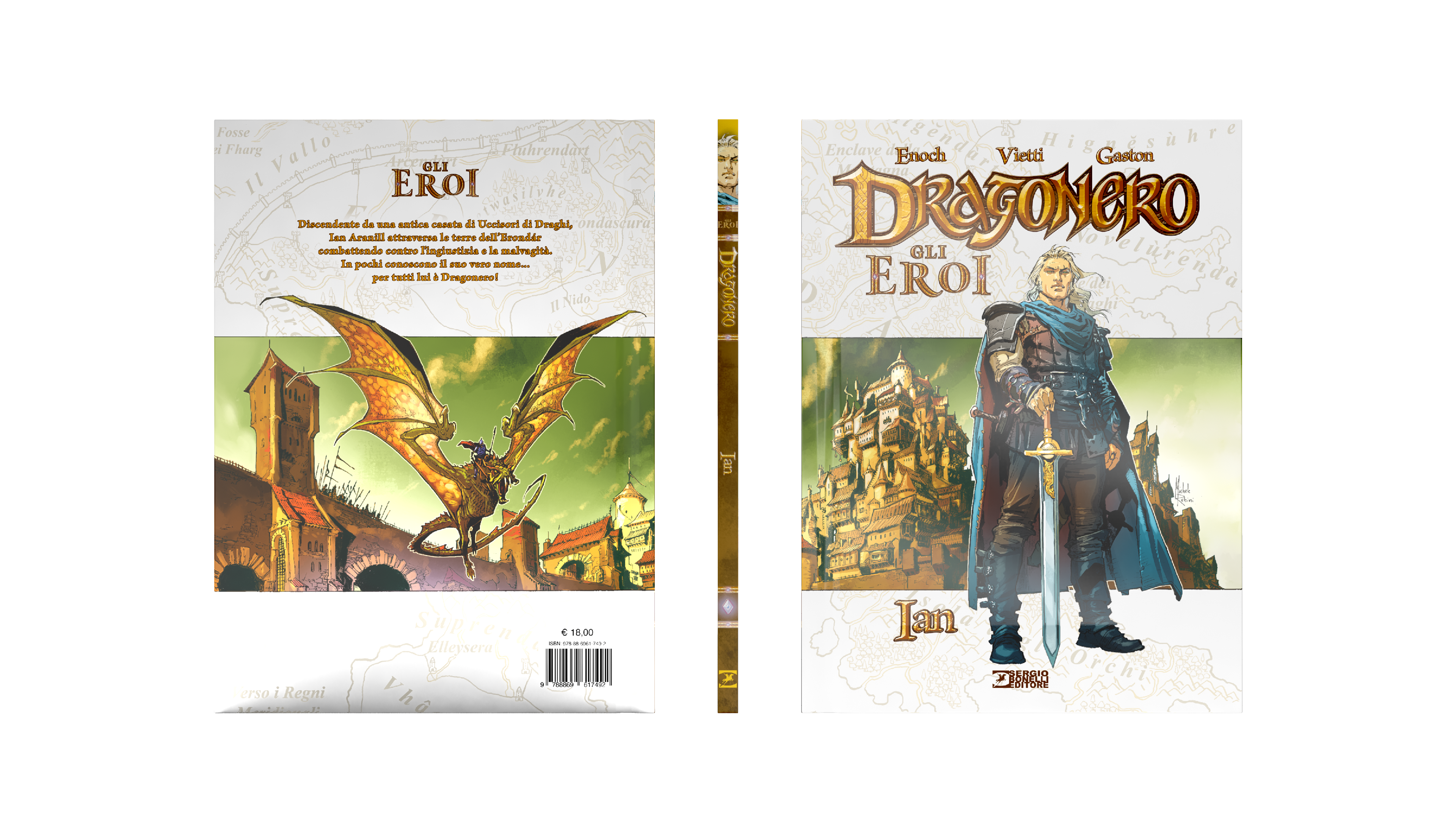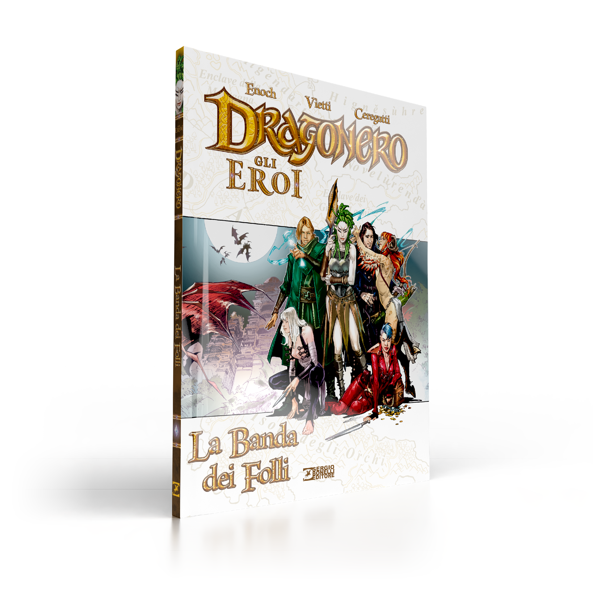 Dragonero is comics book property of Sergio Bonelli Editore. Directorate General Davide Bonelli and Simone Airoldi, editorial director Michele Masiero, editor in chief Luca Del Savio, head of the systems development department Vincenzo Sarno, editorial co-ordination Stefania Bajocchi. Bookstore Manager: Giovanni Mattioli.