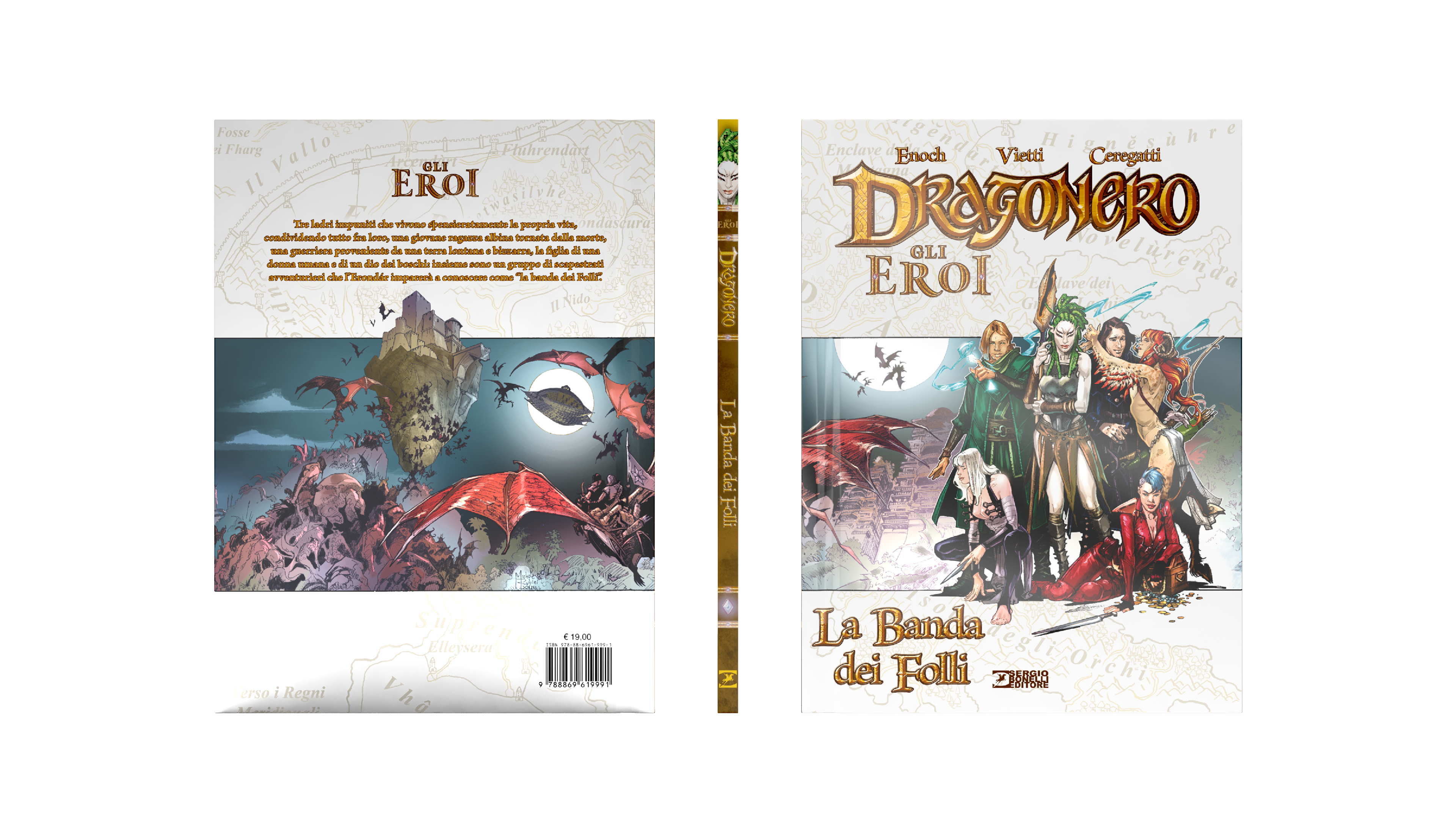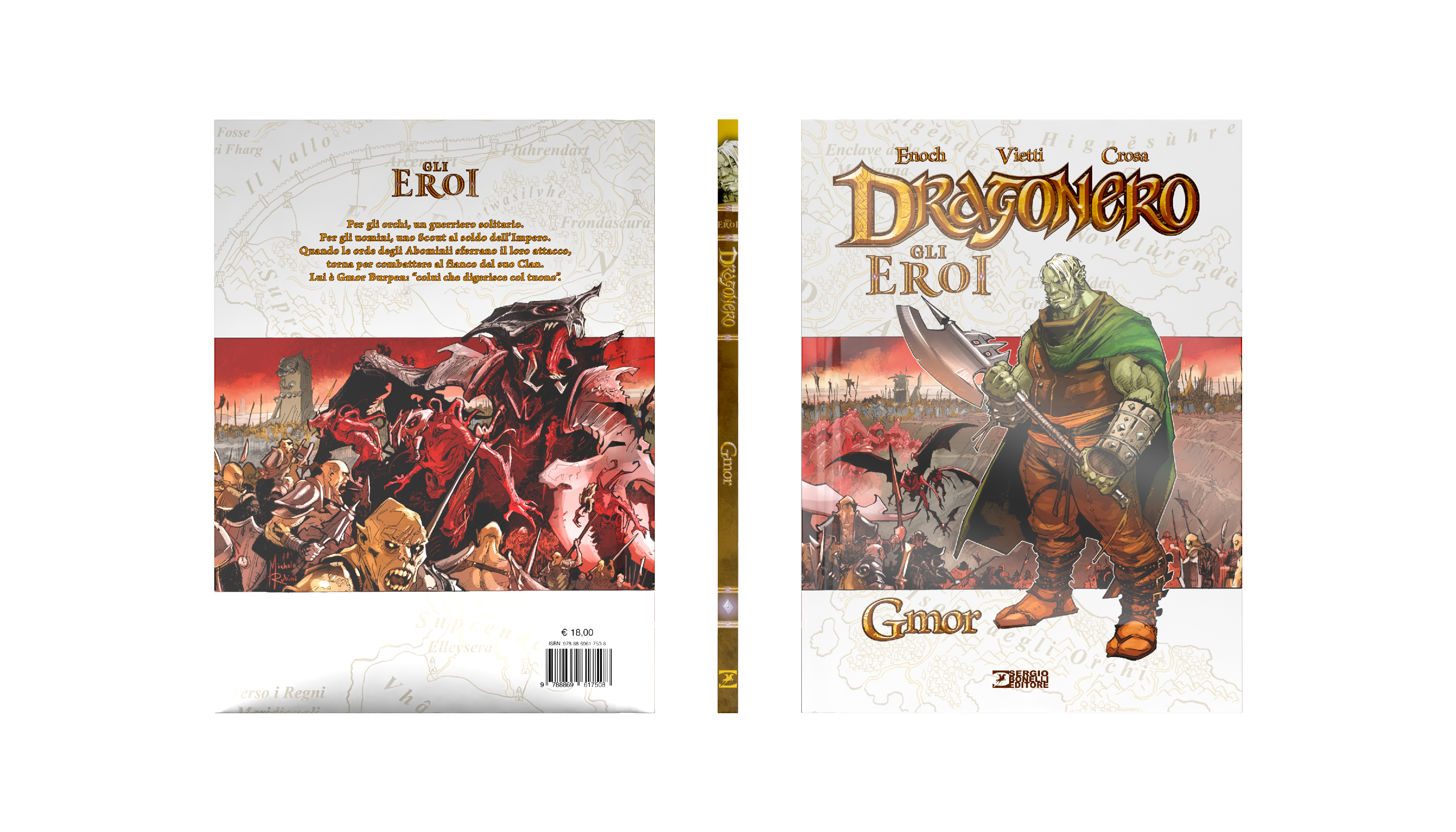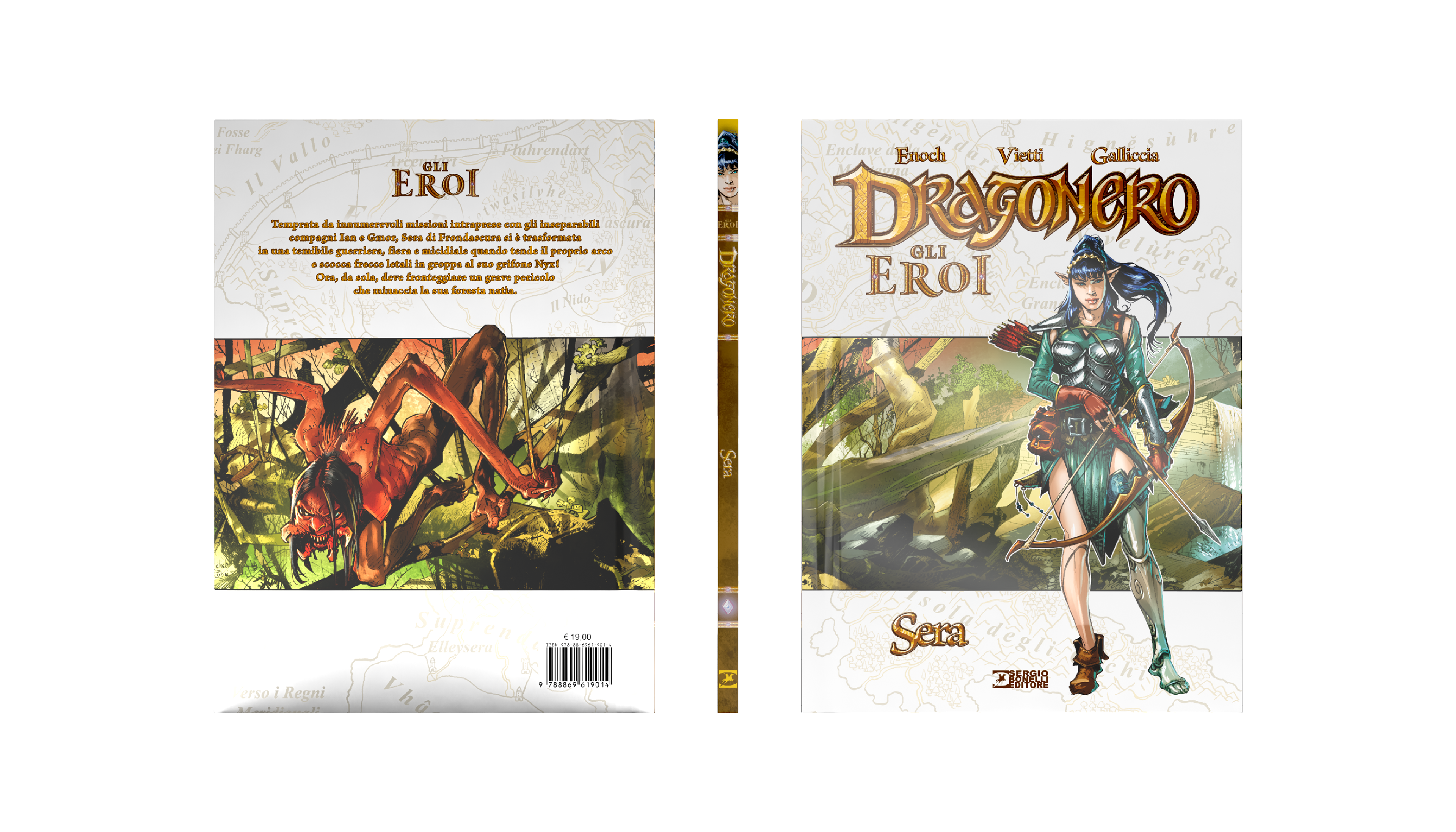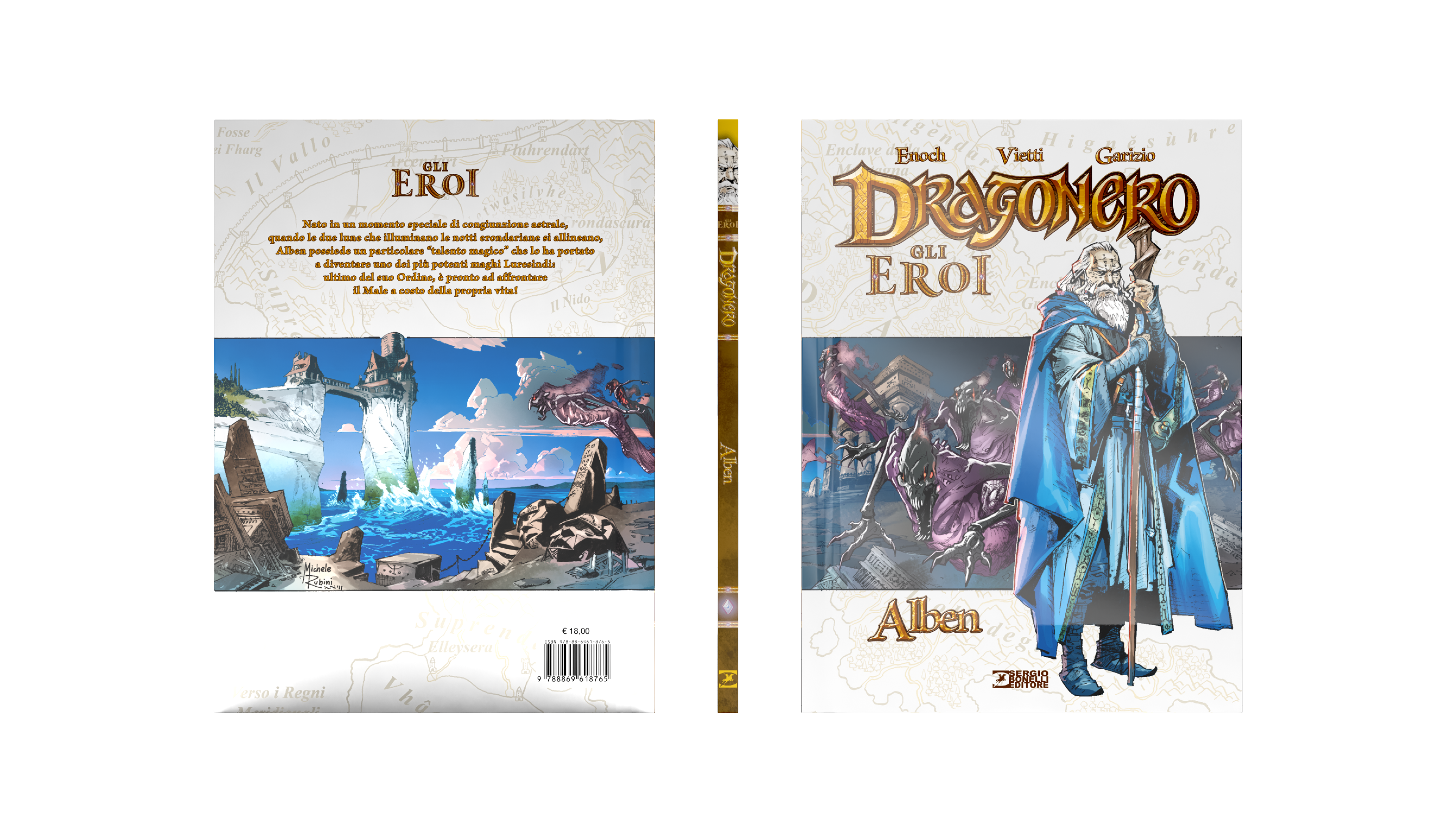 Dragonero is comics book property of Sergio Bonelli Editore. Directorate General Davide Bonelli and Simone Airoldi, editorial director Michele Masiero, editor in chief Luca Del Savio, head of the systems development department Vincenzo Sarno, editorial co-ordination Stefania Bajocchi. Bookstore Manager: Giovanni Mattioli.