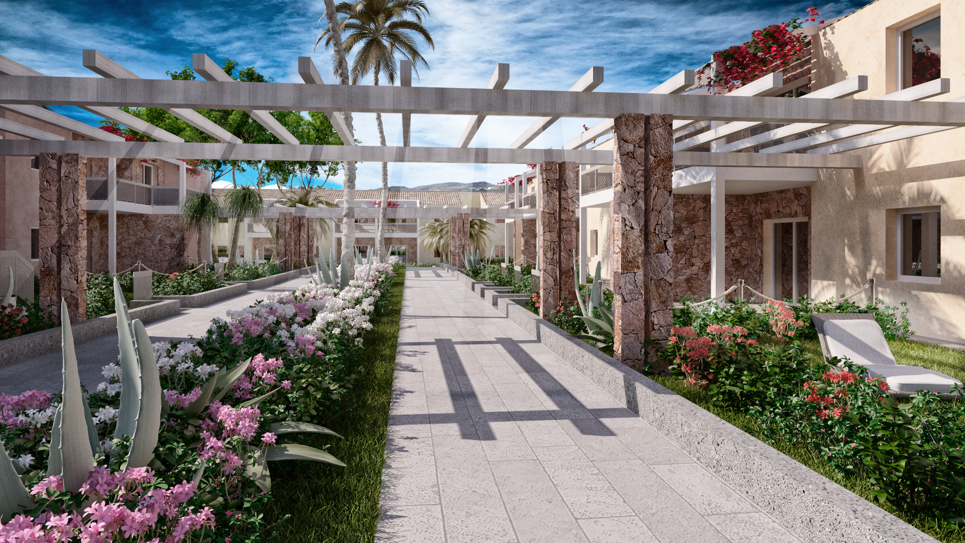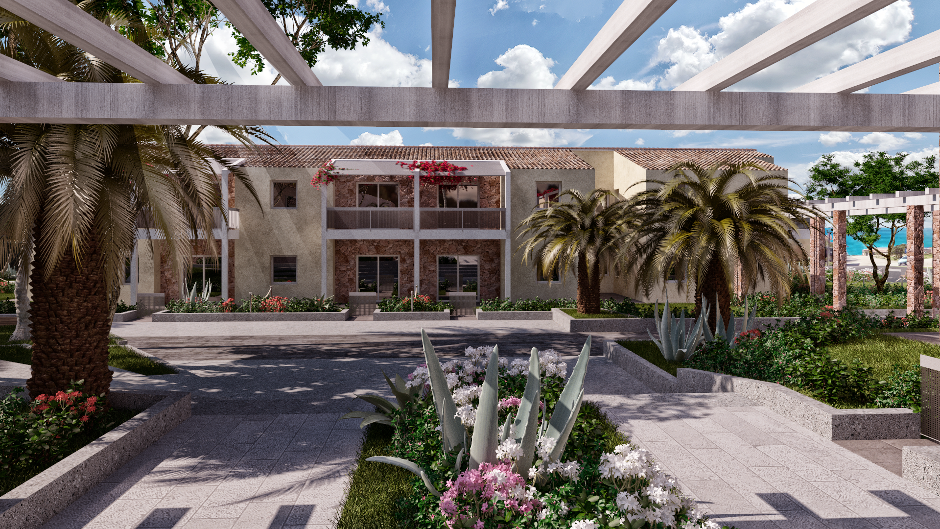 Architectural design of a luxury residence in Sardinia. Through a detailed study of volumes, urban furniture, materials, and lighting, we brought to life the vision of a project currently under construction. A balance of design and scenery.